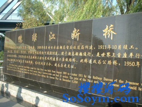 朝鲜战争结束后,鸭绿江上的第一桥中方一侧所剩4孔残桥保留至今,人们称其为“断桥”。1993年6月,丹东市对“端桥”作了一些修整后,命名为“鸭绿江断桥”,定为市级文物保护单位,作为旅游景点对游人开放。“断桥”为浅蓝色,意为不忘殖民统治和侵略战争。