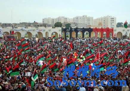 10月23日,在利比亚东部城市班加西,利比亚民众挥舞新国旗庆祝利比亚全国解放。利比亚“全国过渡委员会”副主席古贾23日在班加西举行的庆祝仪式上宣布,利比亚全国解放。利“全国过渡委员会”主席贾利勒发表讲话时呼吁利比亚人民今后保持耐心,秉持宽容,共同维护国家的稳定和安全。当天,班加西、的黎波里、米苏拉塔等地的民众也走上街头,庆祝利比亚全国解放。